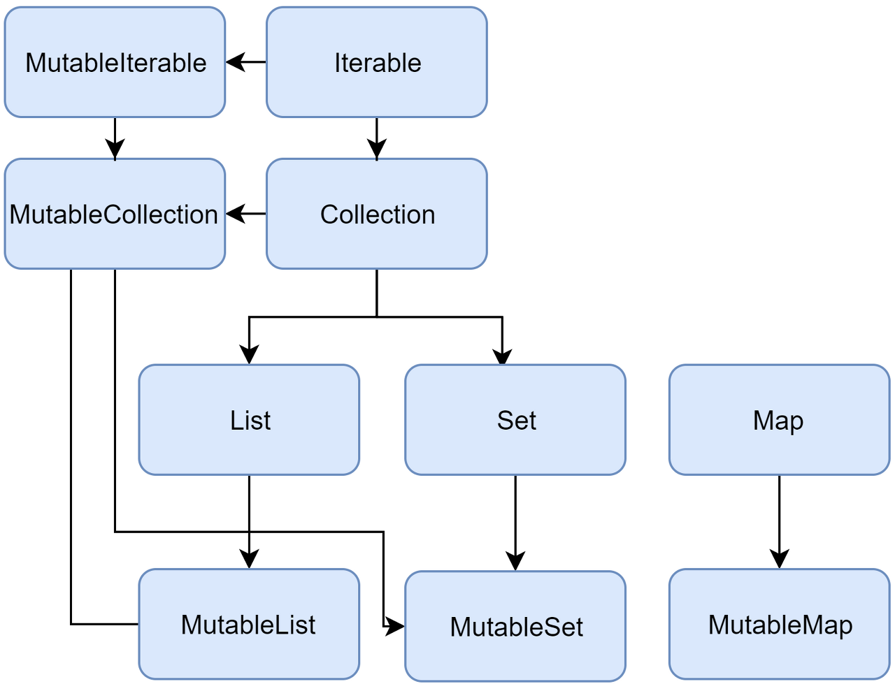 코틀린의 콜렉션들은 아래 그림과 같은 상속 구조 갖고 있다.